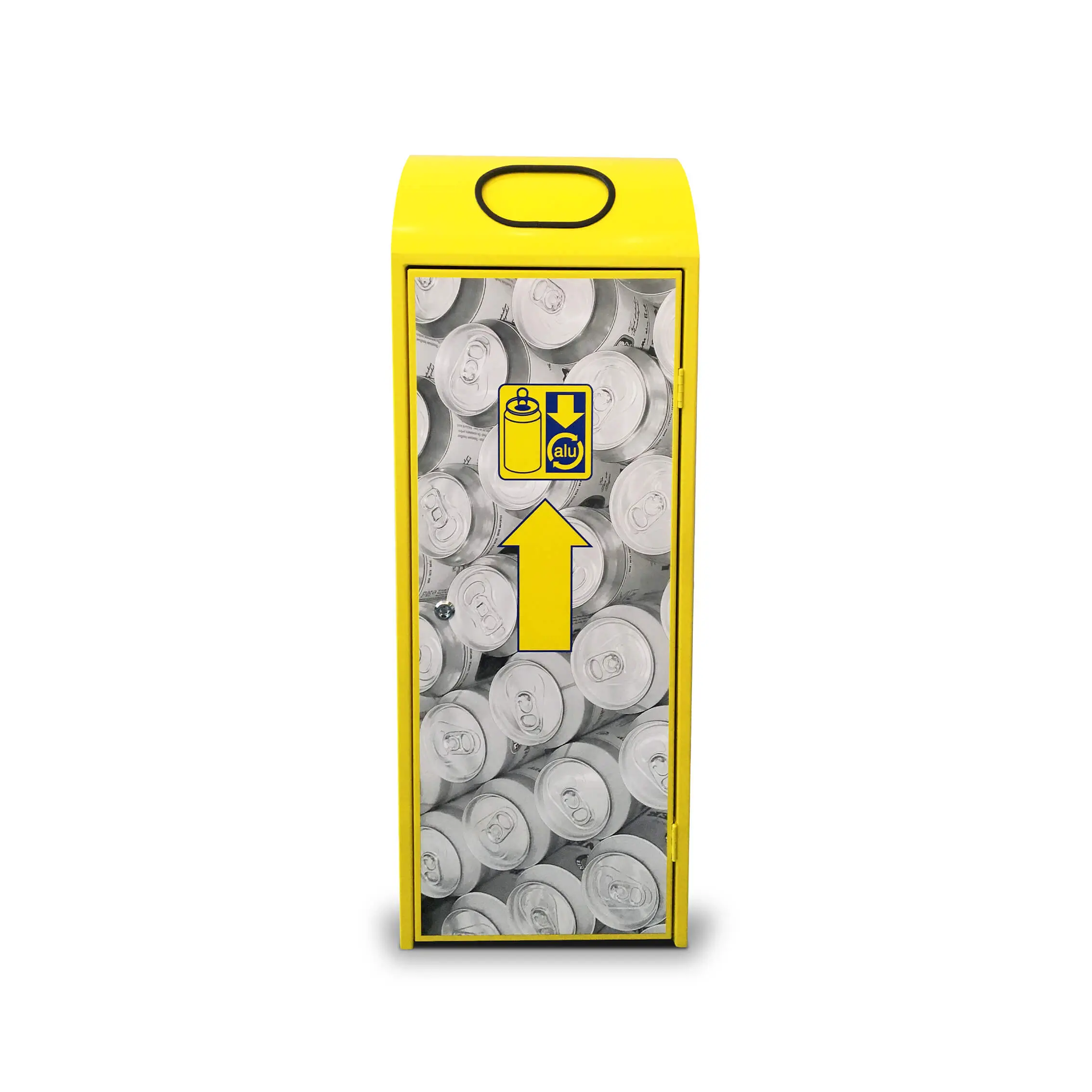 Der Sammelbehälter Metall 2.0 ist stabil und feuerfest, eignet sich für innen und aussen und hat ein Sammelvolumen von 140 Alu-Getränkedosen.
